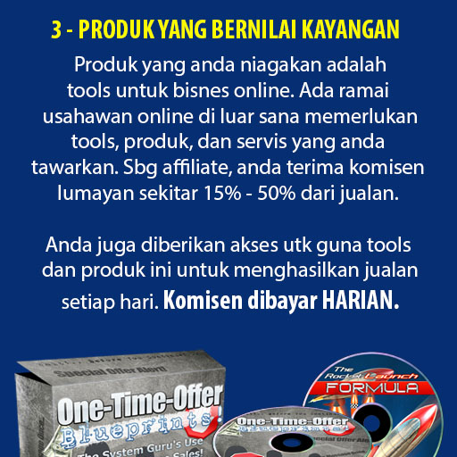 Dengan platform ini, saya dah mengolah satu blueprint yang sebaiknya untuk anda, supaya laluan anda untuk dapat pendapatan sampingan sekitar RM50 - RM500 SEHARI jadi mudah dan realistik. Effort yang diperlukan dari anda sangat minima. Dan jangan lupa modal pun serendah RM20 sekali seumur hidup.