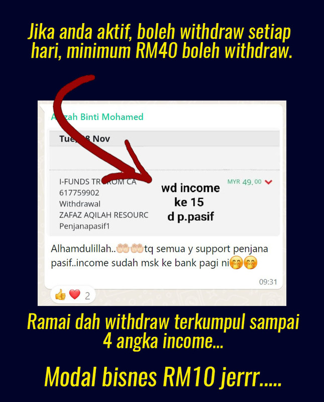 Lihat bukti dibawah, ramai yang berjaya tukarkan modal kecil (RM10) jadi ratusan dan ribuan ringgit sejak kita bermula setahun lalu. Tahun 2023 ni, kita up modal jadi RM20. Sebab kita tambah produk dan komisen. Menariknya, kita tambahbaik juga tools dan kaedah untuk anda LEBIH SENANG dapat jualan.